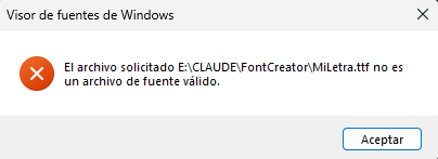 ¡Qué sería de la IA sin errores por el camino! Pero no te asustes, simplemente le he puesto esta misma foto y ya está, solucionado. Con eso ya tenía la tipografía completamente funcional: doble clic en el nombretipografía.ttf , instalar y lista para usar en cualquier proyecto.